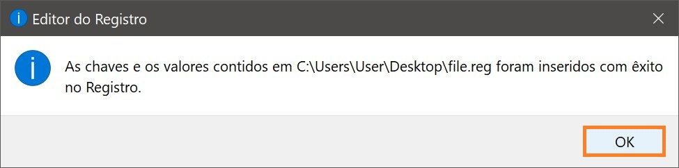 Clique duas vezes com o botão esquerdo do mouse no arquivo .reg.