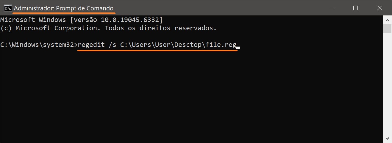 regedit /s Caminho_do_arquivo\nome_do_arquivo.reg