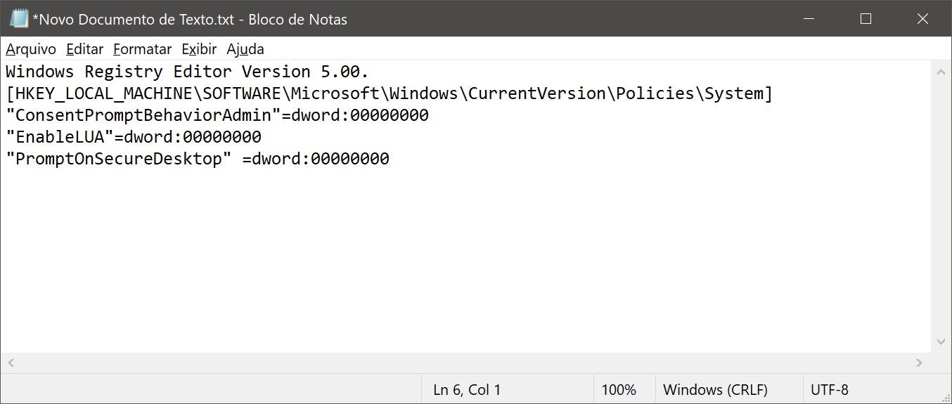 Para aplicar muitos arquivos .reg, é necessário que você esteja usando uma conta de administrador e que o Controle de Conta de Usuário (UAC) esteja desativado.
